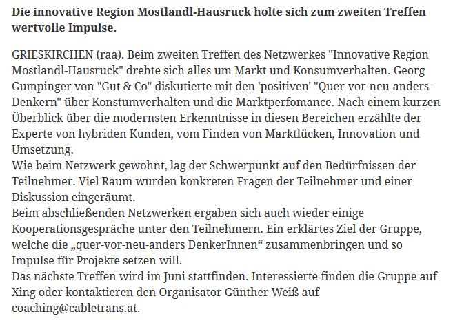 Netzwerk âInnovative Region Mostlandl-Hausruck (ab MĂ€rz 2016)