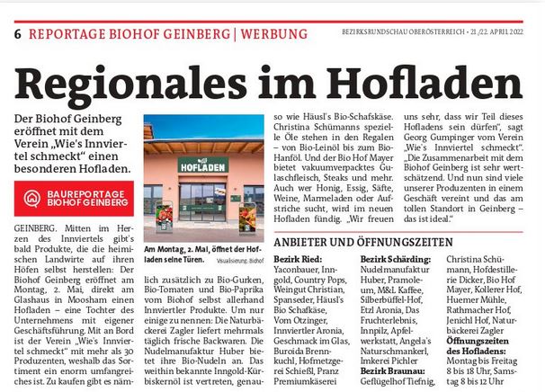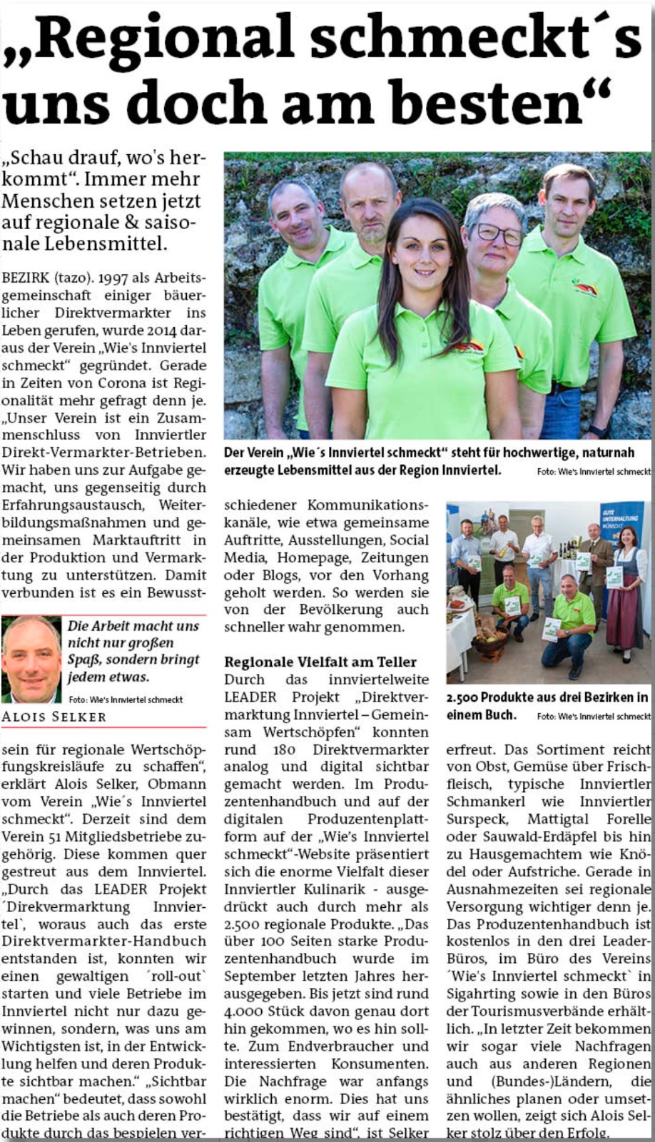 “Regional schmeckts am besten” (Bezirksrundschau SchĂ€rding, Februar 2021)