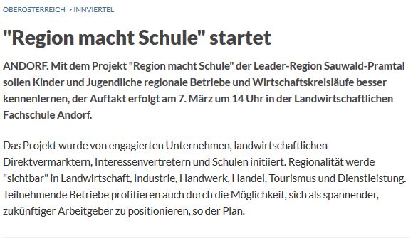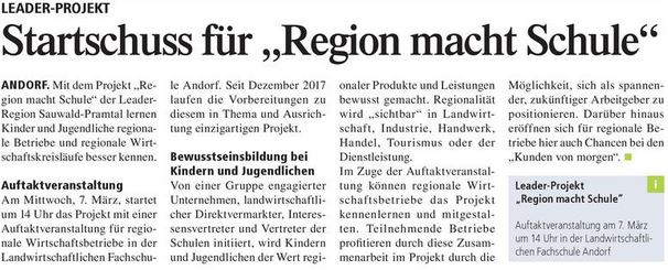 “LEADER-Projekt: Region macht Schule” (innviertelaktuell.at, MĂ€rz 2018)”
