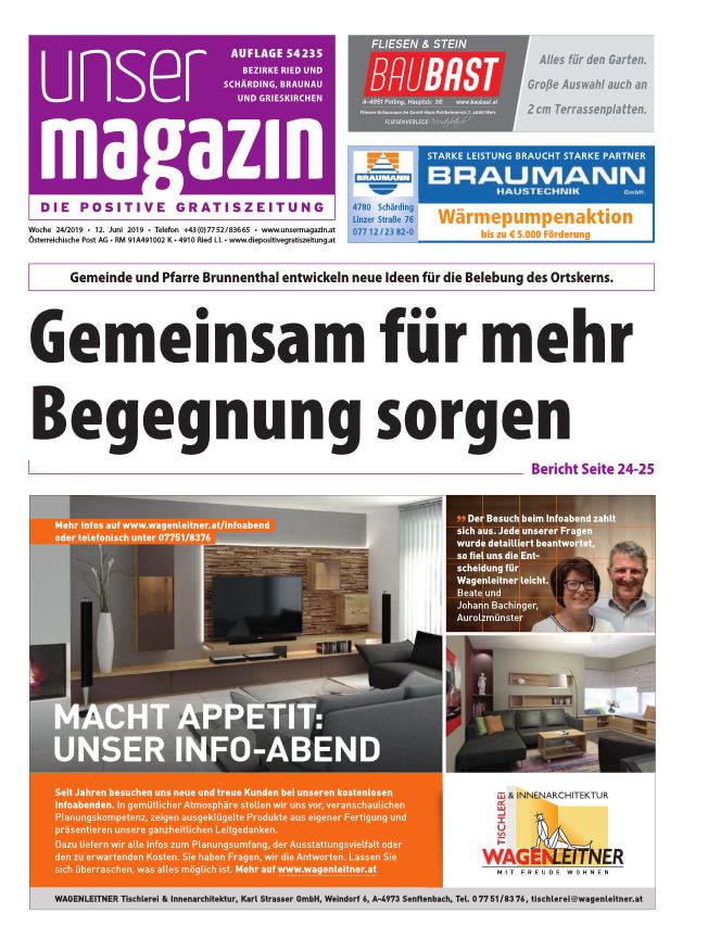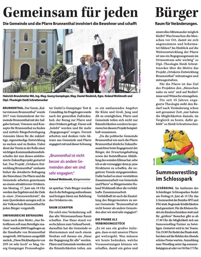 “Brunnenthal und St. Ăegidi machen sich zukunftsfit” (OĂ Volsblatt, OĂ Nachrichten, Juni 2019)