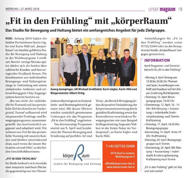 “Fit in den FrĂŒhling mit Körperraum” (Unser Magazin, MĂ€rz 2018)